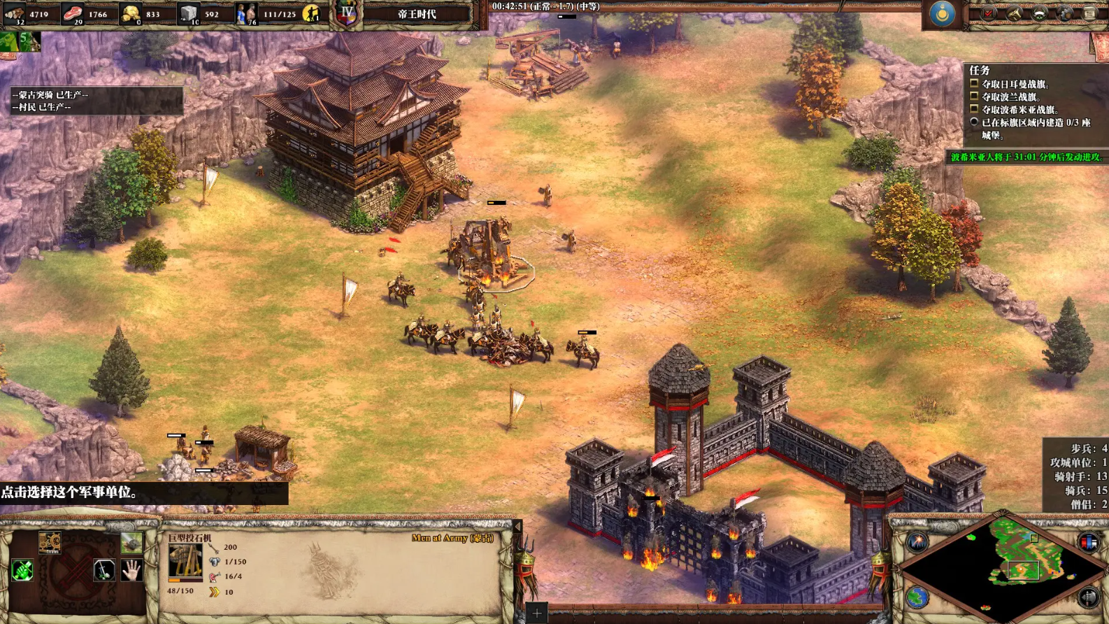 建筑布局需兼顾防御与效率,城镇中心周围应环绕资源点,伐木场与矿场需随采集进度前移。黑暗时代建筑血量较低,需用木墙或哨塔保护关键设施。封建时代可研发箭塔攻击科技,每级提升2点攻击力,三级箭塔在帝王时代配合大不列颠文明可达20点攻击,成为区域控制的核心。步兵系科技价格降低后,长剑士与双手剑士对建筑破坏力显著提升,适合配合冲车推进。