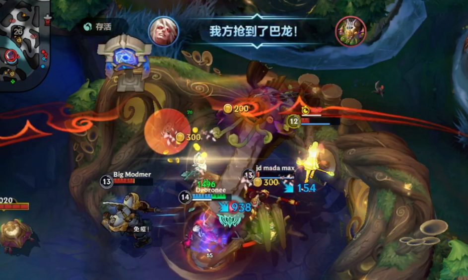 除了属性加成,大龙还能强化兵线,让咱们推塔更容易。近战小兵变得超级肉,受到的伤害降低80%,敌方英雄和防御塔想清兵都难。远程小兵和炮车就更离谱了,射程变远伤害还提高,炮车甚至能在塔外点塔,伤害翻了好几倍。要是咱们有超级兵,周围有敌人时还会获得移速和攻速加成,带着这种兵线推进,对面根本挡不住。