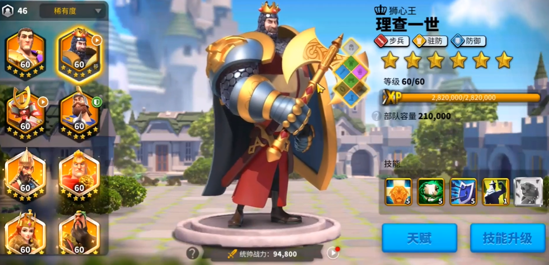 对于混兵玩家来说,埃塞尔弗莱德是贞德的理想搭档。贞德的三兵种增益能完美触发埃塞尔的混兵加成,同时埃塞尔的减益技能可以和贞德的增益形成战术配合。后期获得君士坦丁后,这个组合会更加强势,双重的群体buff能让团队作战能力提升一个档次。天赋方面建议优先点采集路线,因为作为副将时天赋不会生效。采集天赋能让贞德在非战斗时高效收集资源,等级升到37级就足够使用。前期可以适当点辅助天赋来应对远征挑战,中后期再转回采集。
