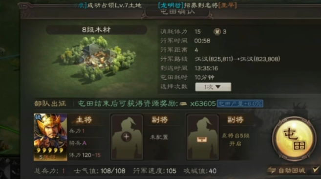 资源获取方式多种多样,最基础的就是占领资源地了。不同等级的地块产量差别很大,尽量打高级地能省不少时间。主城和分城的资源建筑也要及时升级,它们能提供稳定产出。每天三次的木牛流马记得打,能给不少资源和预备兵。屯田功能在急需某种资源时特别管用,选高级地屯田收益更高。