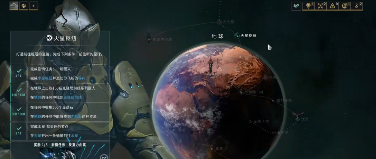 开启火星枢纽,首先得完成前置任务一朝醒来,这个主线任务会带着你一步步熟悉游戏的基本操作。完成咱们需要在地球上击败150名克隆尼前线系列的敌人,建议多刷几趟歼灭或者防御任务,这些地方敌人数量比较集中,完成起来效率更高。