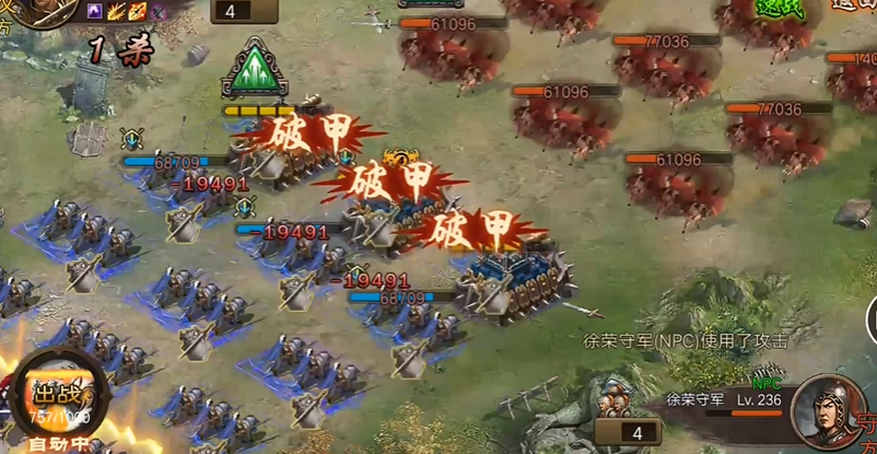 副本最关键的机制在于两次攻打的不同设定。第一次攻打时,前四个NPC的攻防属性处于正常水平,但第五个NPC徐荣的攻防血属性极高,几乎无法正面击败。这种设计意味着首次挑战时只需派遣单个武将试探即可,不必浪费主力。第二次攻打时系统会将第五个NPC替换为攻防血正常的徐荣近卫,才是全力出击的最佳时机,需要合理配置主力阵容争取一次性通关。