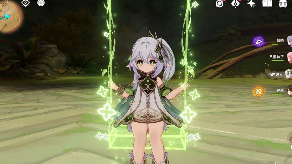 配队方面,激化反应是提纳里的核心输出环境。推荐双草+雷+生存位的组合,例如提纳里+纳西妲+八重神子+钟离。纳西妲提供后台挂草与全队精通增益,八重神子的高频雷伤可稳定触发超激化,钟离的护盾与减抗进一步优化输出环境。若缺乏五星角色,可替换为柯莱、菲谢尔和迪奥娜等四星替代。需避免水火角色干扰激化反应,冰系因不与草反应可作为生存位备选。