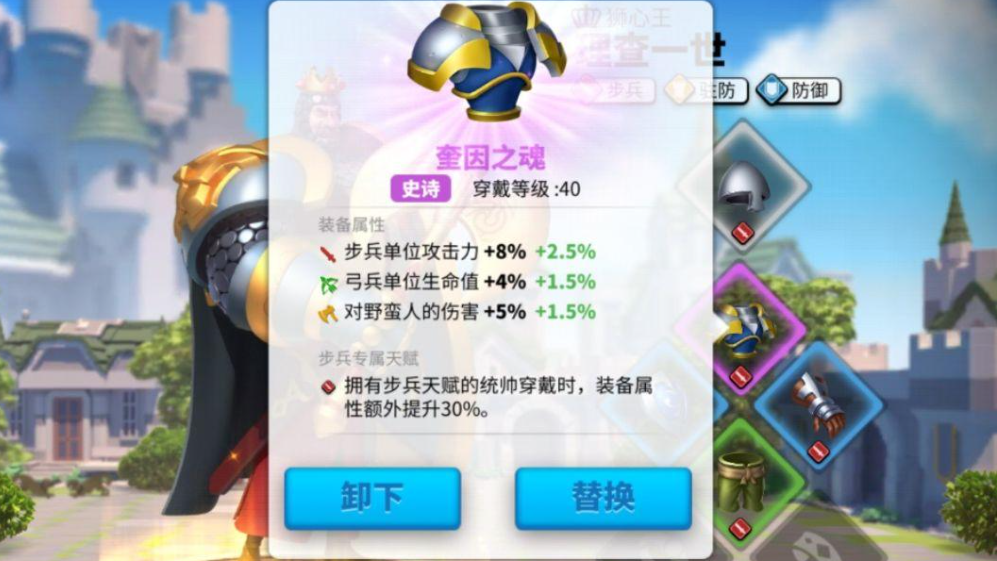 精炼名门之盾时需注意天赋方向的选择,步兵天赋能显著提升步兵单位的坦度,契合理查一世、查理马特等防御型统帅的需求。精炼过程需消耗特定资源,建议优先确保材料充足再进行操作。若精炼结果不理想,可通过重复精炼调整属性,但需权衡资源消耗与收益。