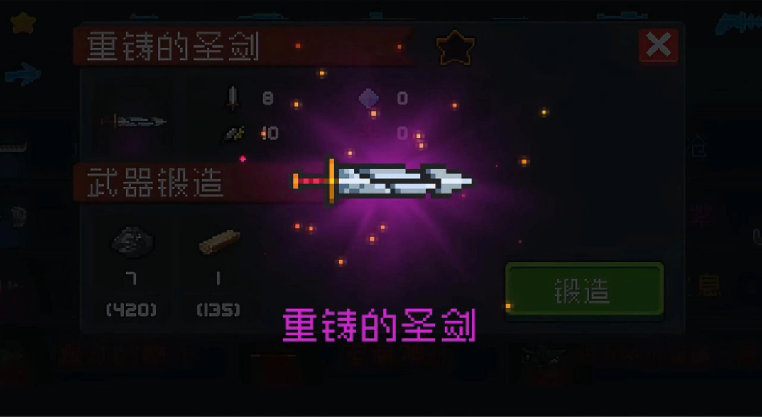 近战类武器的合成选择较为丰富,火焰战斧由战斧与火之杖组合而成,雷剑则需要火焰剑和冰霜剑作为材料。光剑系列可通过光剑红、光剑蓝、光剑绿三色组合为光剑土豪金。浪潮法杖与干草叉能生成三叉戟,而破碎的剑柄与剑刃可重铸为圣剑。部分近战武器还能通过添加进阶套件产生变异,例如40米大刀由武士刀与套件合成。