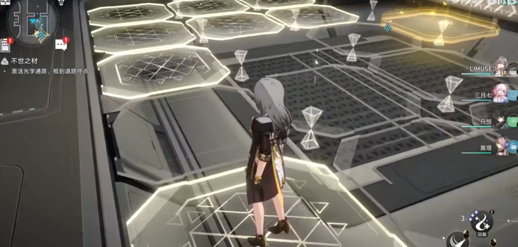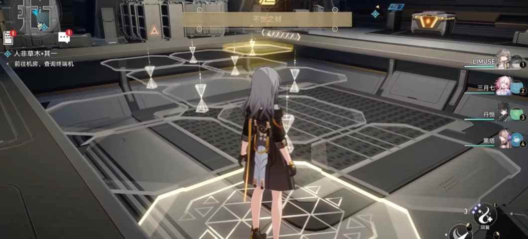 任务第一天(人非草木·其一)开始于收到螺中笑声的短信,随后需要与艾丝妲对话并调查主控舱段的克里斯、梅厄以及基座舱段的乔安。调查方式是在目标附近点击旁听选项。完成调查后前往终端机机房,首次不世之材挑战的走法为:往上一格、往左一格、往上两格、往下一格、往上两格。完成挑战后终端机显示算力不足,需等待次日继续。
