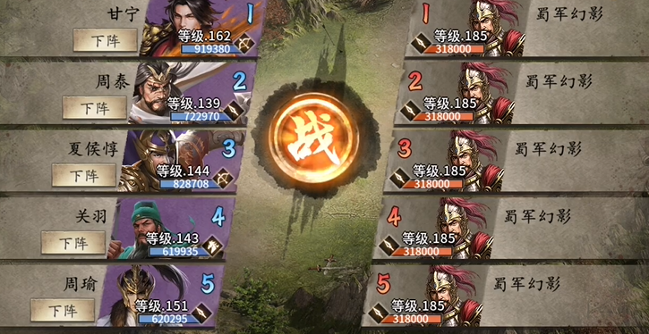 关羽使用驱虎套装,平砍至最后一排释放战法,为夏侯惇提供护盾。夏侯惇携带霸下或灵龟套装,凭借护盾抵挡伤害,尽可能击杀第四部将。周瑜作为压轴武将,需在吴兰剩余三至四排时释放战法,利用地形优势完成收割。整个流程对斩杀、乱舞等特效依赖较低,但需确保貂蝉成功魅惑吴兰战法。
