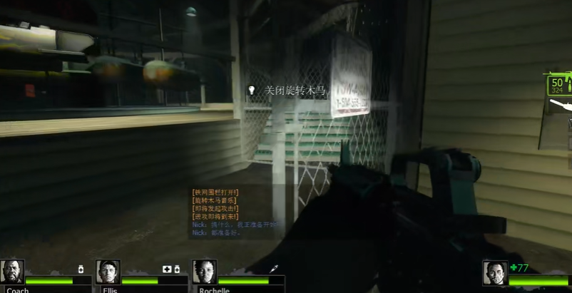 穿过室内区域后,玩家会到达游乐场的另一端,此处通常会有弹药和武器补给。补充完毕后,团队需要从一个斜坡下行,继续沿着固定路线前进。途中会经过旋转木马等游乐设施,若旋转木马处于启动状态,会持续吸引僵尸聚集,建议尽快关闭以降低风险。游乐场整体路线设计较为线性,岔路较少,主要挑战在于应对尸潮和特殊感染者的突袭。