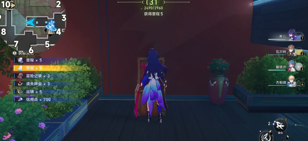 接下来传送到悠暇庭,贴着地图左侧的墙壁一直走,第五个宝箱就在NPC燕翠旁边。拿完这个宝箱后,重新回到悠暇庭传送点,往地图右上角出发,第六个宝箱在书店右边的角落,稍微转一转就能看到。拿完第六个宝箱后,继续往地图上方走,第七个宝箱就在石凳旁边,位置不算隐蔽,但容易因为赶路而错过。