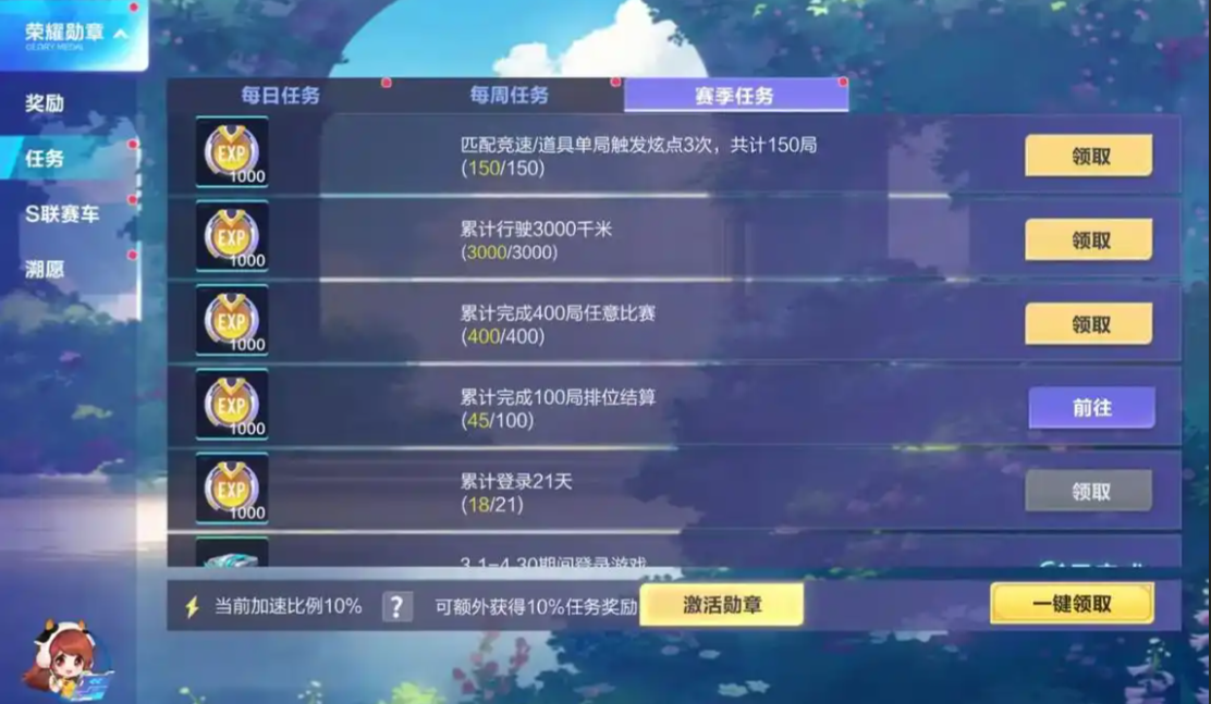 快速升级的话,每天上线第一件事就是把日常任务清完,这些任务给的经验特别多,而且做起来也不难。排位赛和多人赛事也是经验大头,跑得好的话一把能拿不少经验。记得周末上线玩,因为周末经常有双倍经验活动,这时候升级效率直接翻倍。