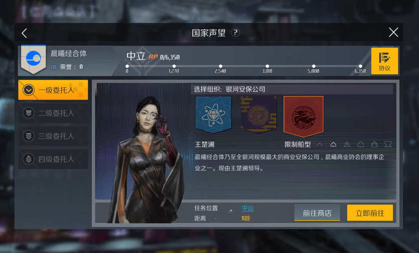 触发安全危机任务,首先得找到关键NPC王楚澜。这家伙藏在中山星系的空间站里,虽然任务线索里没明说具体位置,但只要跑到晨曦经合体的声望任务里,就能找到快捷链接直接跳过去。如果懒得跑声望,也可以直接在星图搜索中山站,手动飞过去也行。找到王楚澜对话后,任务就正式开始了,记得提前准备好三级巡洋舰,后面战斗会用得上。