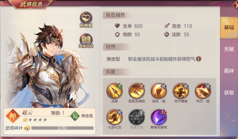 赵云绝对是咱们前期最值得投入资源的武将之一,这位七进七出的猛将不仅容易获取,实战表现也相当亮眼。他的龙胆技能自带护盾和免伤效果,生存能力特别强,而七进七出能直接切到敌方后排造成大量伤害。无论是推图还是PVP都能发挥稳定作用,培养起来后可以陪你走很长一段路。