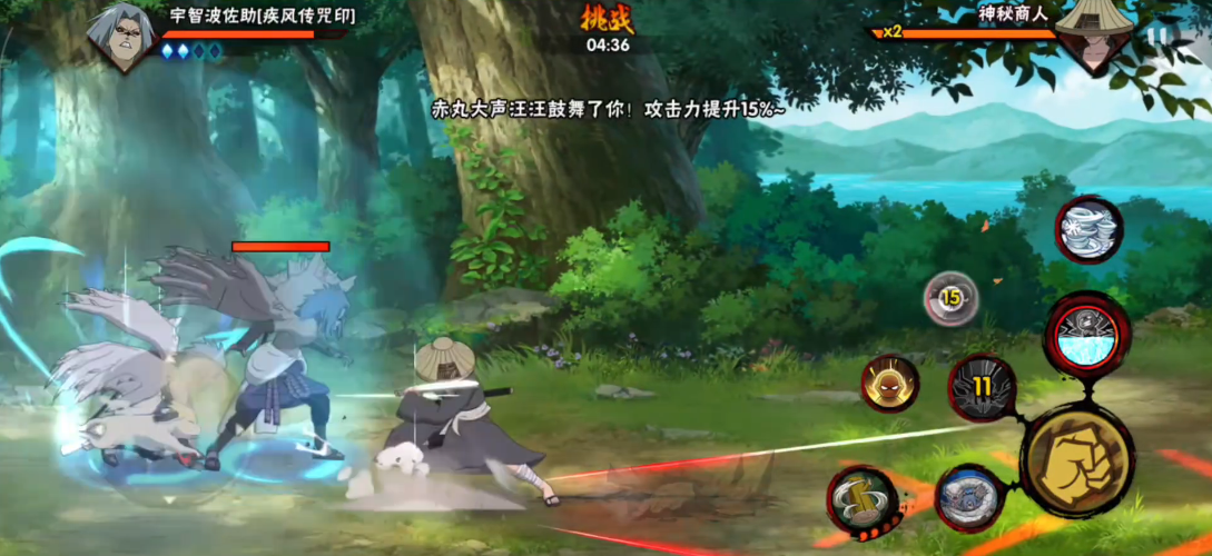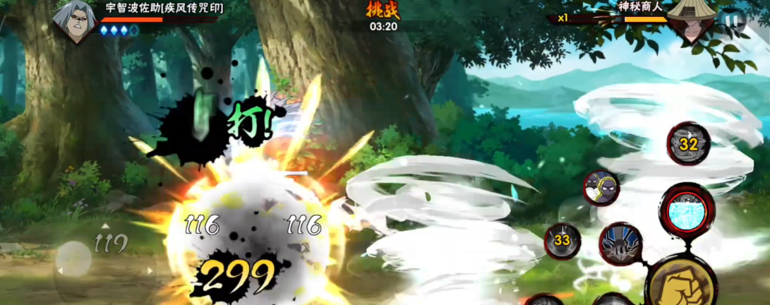 商人瞬身阶段的攻击频率较高,但每次释放技能后存在短暂僵直,这是输出的最佳时机。建议保留高爆发技能或秘卷在此阶段使用,同时避免贪刀导致被反打。若携带岩落之拳、恢复之拳等控制回复类能力,可显著降低战斗难度。战斗伙伴选择赤丸或猿魔能提供额外攻击支持,秘卷推荐土遁·土流枪或一字连柱等范围伤害型技能。