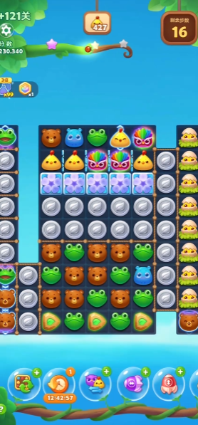 关卡里会有大眼仔或者寄居蟹,它们动起来或者被激活的时候,会产生好几种特效,能消除一大片。咱们要做的就是为它们创造活动的条件,比如消除掉它们下面的银币或者雪块。当这些帮手开始工作的时候,往往就能带来一波强力的连消,冰块消起来就快多了。到了收尾阶段,可能就剩下一些贴在边边角角的冰块,这时候步数通常也不多了,就更要稳扎稳打,用最基础的消除或者依靠魔法石、花团的残留效果来慢慢清理,心急反而容易浪费步数。