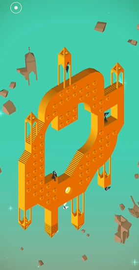 玩家需操作轮轴和机关来调整平台高度和路径,例如转动转轴控制平台升降,使图腾方块能够到达下方位置,接回其他碎块,最终当四个图腾方块都移动到祭坛的四个边时,道路会完全连通,艾达可以沿着台阶向上行走,到达终点小门,完成关卡,这一阶段要求玩家保持冷静,反复尝试以确保图腾方块正确就位。