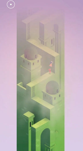 玩家需要控制罗尔和她的女儿通过视觉错觉和机关互动来推进旅程。一开始,点击迷雾中的最高处位置让罗尔移动上去,这样上方的建筑会变得清晰可见。接着向下滑动建筑中带有三个圆孔的机关,让母女俩站到机关上的方格中,然后向上滑动同一机关,引导她们分别走向两个黄色按钮并触发机制,点击门的位置进入下一阶段。