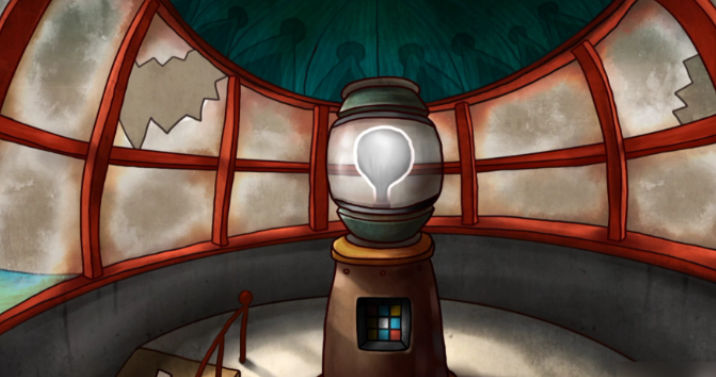 当你成功让所有颜色的灯泡都亮起,刺眼的光芒会瞬间充满灯塔顶层,这标志着电路修复完成了。但事情还没完,这时候你需要回到一楼。在一楼找到一个有奇特形状钥匙孔的电箱,将在三楼拿到的那把异形钥匙插进去并打开它,里面会有一个红色的开关。拉下这个开关,灯塔一楼的电源就会被切断。这个操作直接关联到二楼那个一直转动的风扇——电源一断,风扇就停了。这时你再返回二楼,就能从容地从停止的风扇后面取出一个摇杆部件。这个摇杆是激活码头八音盒或者其它机关的重要道具。灯塔内部的所有谜题才算全部解决。