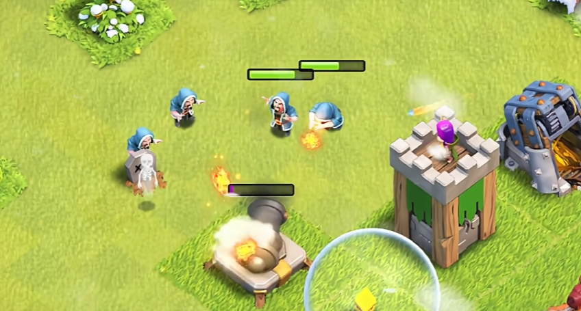石法巫流以两个石头人、十二个法师、五个女巫、两个皮卡超人为主力,配合双王与大守护者,法术带三弹跳、两狂暴、一治疗,石头人吸引所有防御火力,法师跟进范围输出清理密集建筑与陷阱,女巫召唤骷髅部队探路抗伤,皮卡超人破除核心防御与城墙,弹跳法术让部队快速穿越多层城墙,狂暴法术强化法师与皮卡输出,适合十本至十四本大型阵型,推进节奏平稳覆盖范围广,可逐步瓦解敌方整体防御布局。兵种搭配需遵循肉盾抗伤、核心输出、功能辅助的互补原则,根据敌方阵型结构、防御分布、陷阱位置灵活调整,法术与英雄技能释放时机直接影响战局走向,清边、断边、杀援、爆核心的步骤衔接要紧凑,不同流派适配不同阶段与阵型,熟练掌握主流搭配并优化细节,可大幅提升进攻效率与三星成功率。