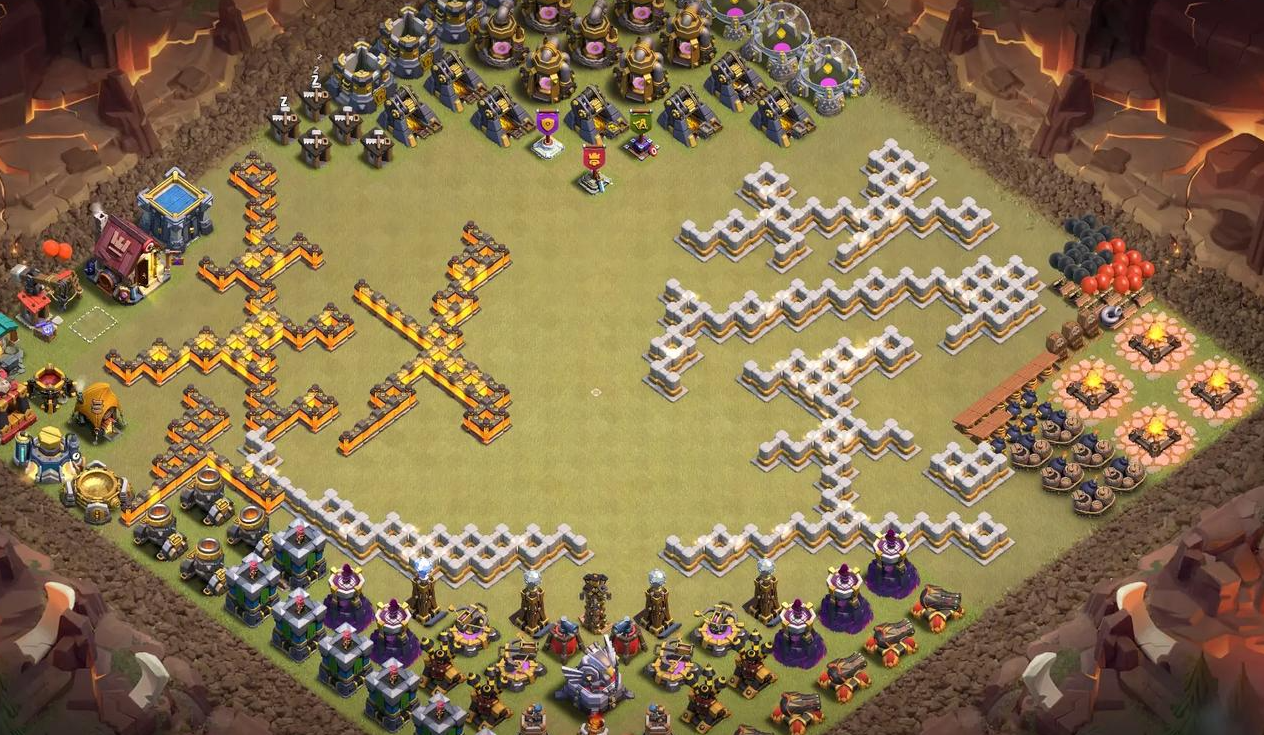 援兵与英雄的搭配是防守成败的关键。部落城堡内应常驻皮卡超人作为核心援兵,搭配弓箭手、法师、小龙组成混合部队。将城堡置于核心防御圈内,确保皮卡能第一时间拦截敌方推进部队,并利用远程援兵清理干扰单位。英雄布局上,让弓箭女皇藏于墙后高位,持续输出伤害;蛮王与大守护者则驻守核心区,大守护者优先开启守护模式跟随皮卡,利用技能减伤与治疗延长其存活时间,让皮卡成为吸引火力并持续消耗敌方的“肉盾”。