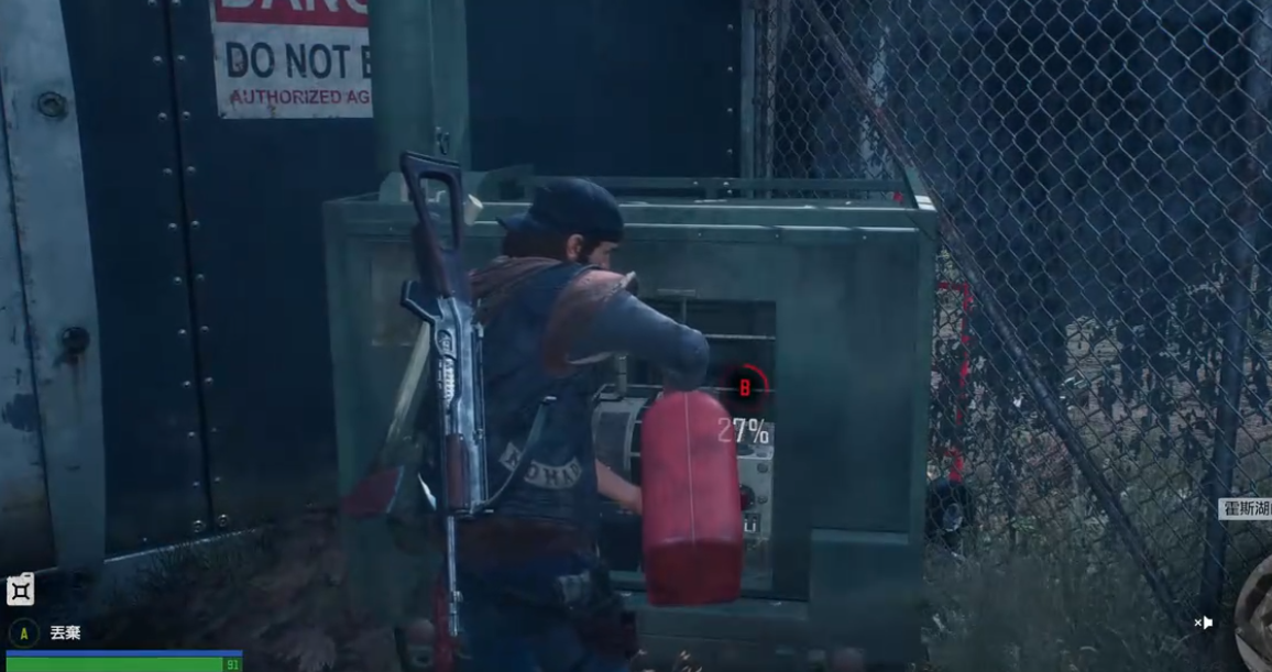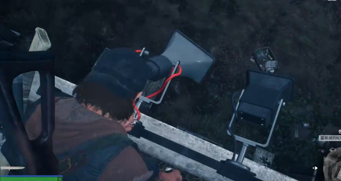 发电机的油箱其实就在栅栏外面,也就是刚才推车的地方附近。记得先检查周围有没有扩音器,比如屋顶或者高处的,能用刀割就割掉,够不着的话直接开枪打爆。这些扩音器会吸引丧尸,清理干净再启动发电机更安全。