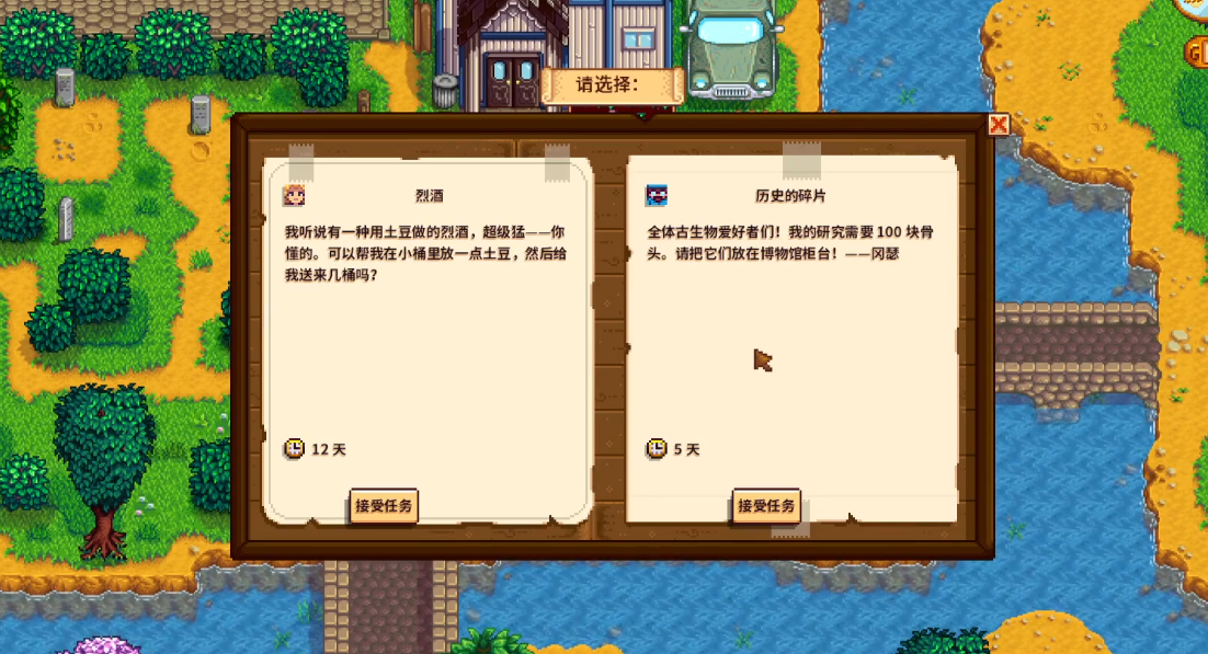 任务的核心难点在于时间规划与资源调配。土豆种植需要6天成熟期,小桶酿制还需4天,因此需确保任务周期内能完成至少两轮种植与酿制。建议在接取任务前提前储备土豆种子,并在农场预留足够的小桶。若小桶数量不足,可通过砍伐硬木或购买树脂加速制作。小桶的配方需达到耕种等级8级解锁,材料包括30个木材、1个铜锭、1个铁锭和1个橡树树脂。