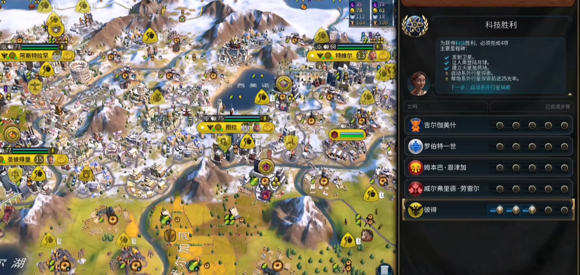文化胜利方面,俄罗斯的拉夫拉修道院提供的大作家、大艺术家等伟人点数使其在文化伟人竞争中占据优势。配合遗物流或著作流策略,可以快速积累旅游业绩。若选择遗物流,需优先建造圣米歇尔山等奇观;若选择著作流,则需规划足够的剧院广场与博物馆。文化胜利的节奏较慢,但俄罗斯的信仰经济可以支持后期自然学者与摇滚乐队的频繁购买,进一步加速文化输出。