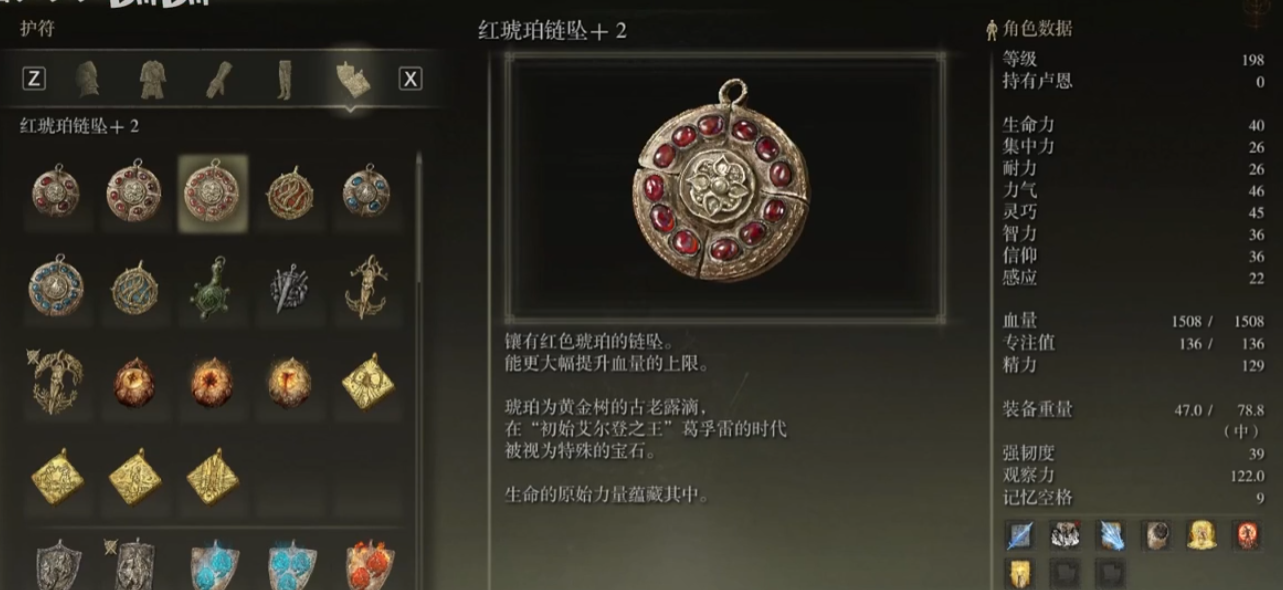 初始遗物的选择对前期游戏体验有一定影响,但整体而言差异并不显著。游戏提供九种遗物,包括红琥珀链坠、交界地卢恩、黄金种子、尖牙小恶魔的骨灰、石剑钥匙、魅惑树枝、煮熟的虾子肉、龟裂壶和夏玻利利之祸。这些遗物各有用途,但多数在游戏进程中可通过探索或购买获得,因此初始选择更多是优化开局体验而非决定长期发展。