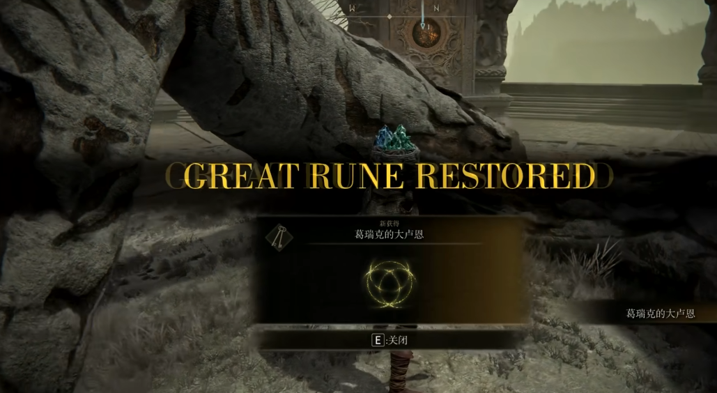 激活后,需在任意赐福点菜单中选择大卢恩选项装备葛瑞克的大卢恩。但装备仅为其生效的前提,实际增益需消耗道具卢恩弯弧触发。卢恩弯弧可通过联机协助他人击败BOSS、探索地图拾取或商人购买获取。使用后角色将获得全属性提升,但死亡后效果消失,需再次消耗弯弧激活。
