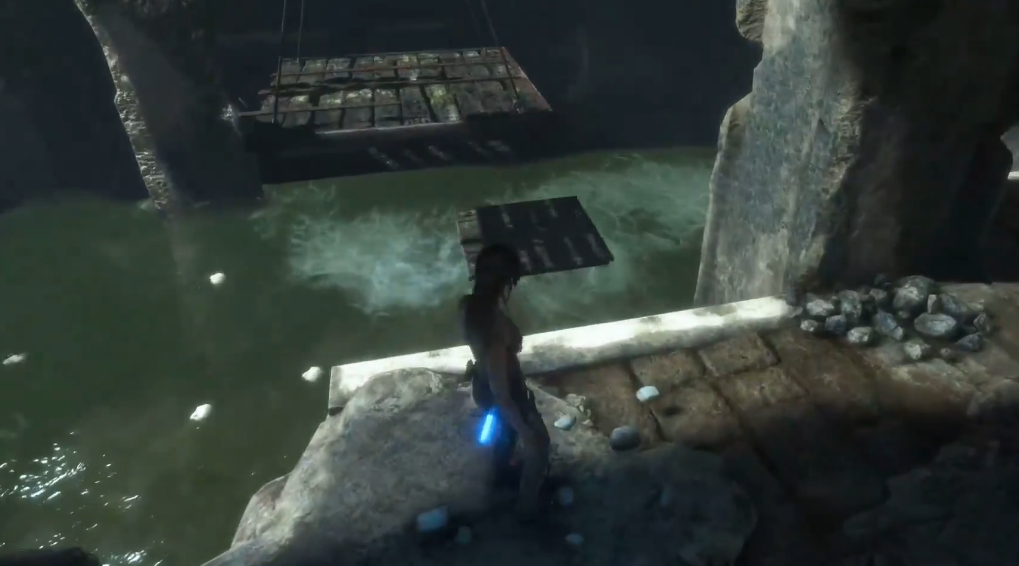 在探索蓄水池古墓前,建议提前制作好榴弹箭。古墓入口位于伐木场区域,使用求生本能可以找到悬吊原木的起重机。射击原木上方的脆弱部分,让它坠落砸开地面形成井洞。进入竖井后,沿着黑暗的洞穴前进,听到水流声时注意右侧石壁,跳过去攀爬至下方洞穴。