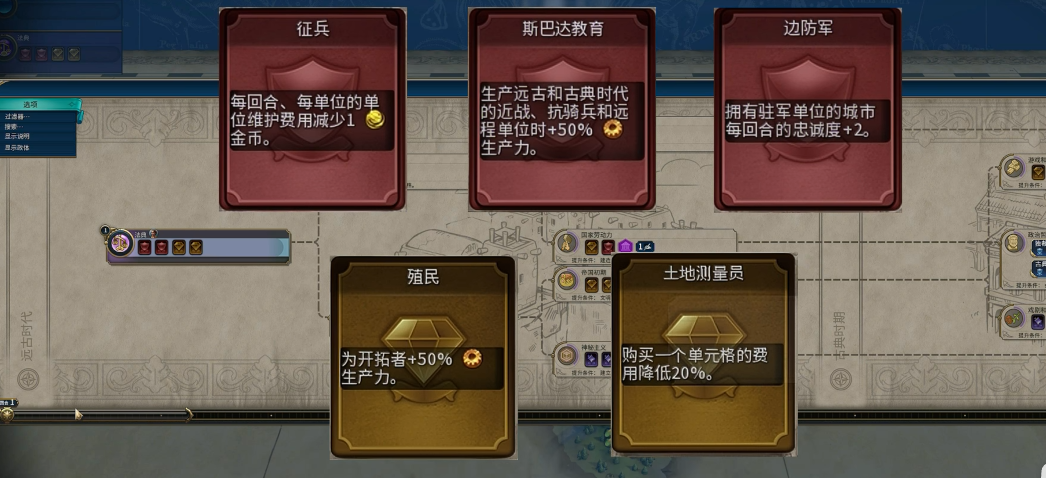 军事政策在早期扩张和防御中至关重要。斯巴达教育提供远古古典单位50%产能加成,配合锻造之神万神殿效果可快速组建军队。中后期则需根据战争规模选择职业军队(升级半价)或征兵(维护费降低)等卡片。经济政策中,城市规划(每专业区域+1生产力)和理性主义(学院区建筑产出翻倍)是泛用性极强的选择,尤其适合精铺玩家。外交政策如魅力领袖(城邦影响力+2/回合)能有效巩固城邦关系,而商队旅舍(商路+2金币)则适合贸易路线密集的文明。