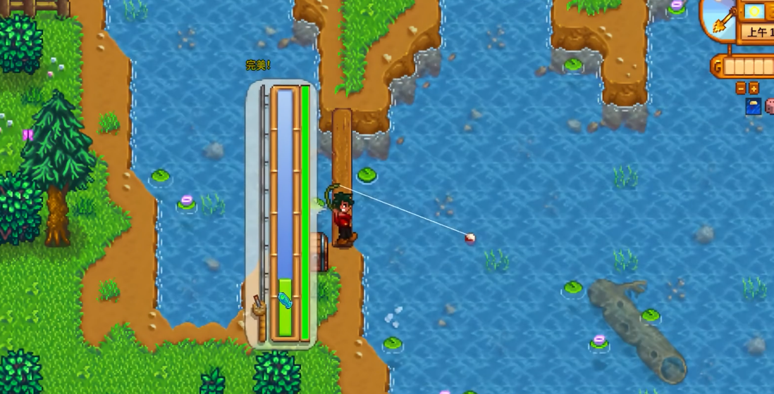 钓鱼是新手最容易上手的赚钱方式,不需要任何成本,只要一根鱼竿就能开始。海边、河流和矿洞附近的湖泊都是不错的钓点,钓到的鱼品质越高越值钱。随着钓鱼技能提升,还能解锁更好的鱼竿和鱼饵,效率会大大提高。如果遇到下雨天,一定要多钓鱼,因为雨天稀有鱼类的出现概率会大幅增加。