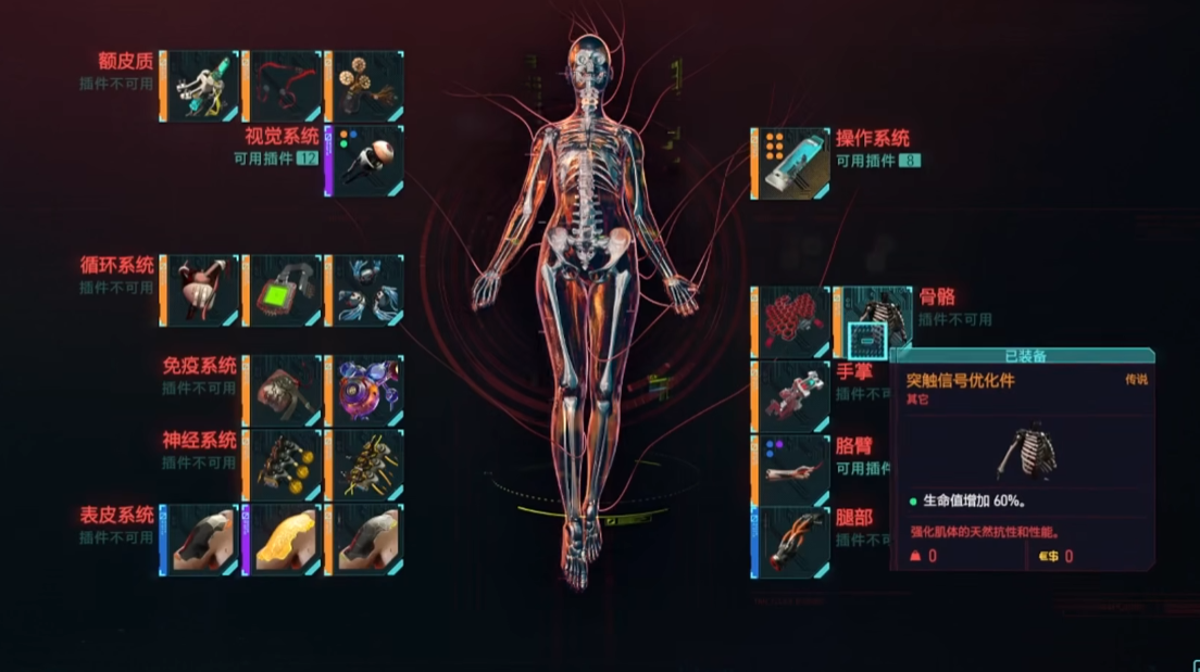 肉体属性的加点不仅影响生命值基础数值,还关联到近战伤害、耐力等战斗属性。专长系统需在肉体技能树中投入点数解锁,部分专长需前置条件或特定等级。义体改造需在游戏中寻找特定义体医生,不同品质的义体提供的加成差异较大,稀有插件如感官功放能增加15%最大生命值。这些系统的协同作用需要玩家根据战斗风格进行平衡。