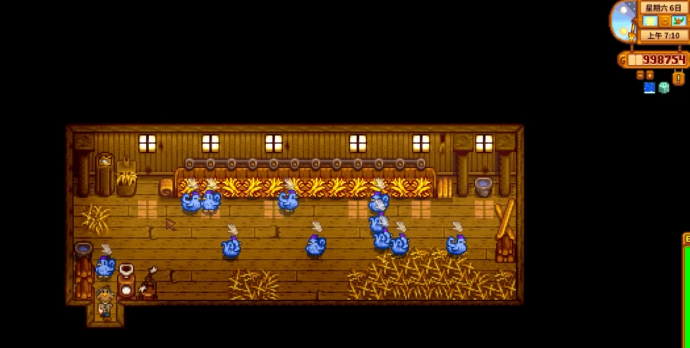 随着季节推进,夏季可以种植蓝莓这类高回报作物,同时把洒水器做出来减轻浇水负担。矿洞要尽快下到70层左右,这样能稳定获取铁矿和煤炭资源。养鸡是个不错的选择,鸡蛋做成美乃滋能翻倍利润,记得在鸡舍外围种些野草当饲料。社区中心的献祭任务要优先完成春季觅食包和春季作物包,这些能解锁矿车等实用功能。