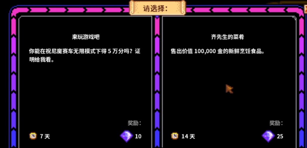 齐钻任务中有些挑战比较特殊,比如齐先生的善意要求一周内送出50份居民最爱的礼物。注意必须是他们最喜欢的物品,普通礼物不算数。提前准备好紫蘑菇、韭葱、黄水仙等容易获得的礼物,按区域规划送礼路线会更高效。齐先生的菜肴任务需要制作价值10万金币的新鲜菜品,三倍浓缩咖啡是最快完成的方式,虽然会亏钱但能快速拿到25齐钻。