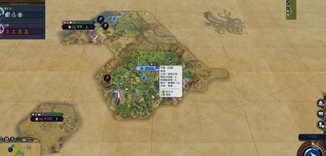 充分利用巴比伦的特色单位与建筑是开局规划的重要组成部分。特色单位主力军团在对抗骑兵单位时拥有显著优势,且具备更高的移动力和视野,开局时生产一至两个用于探路和清理蛮族哨站是有效的选择,但其正面作战能力有限,不应作为早期大规模征服的核心。特色建筑沟渠替代了水磨,需要城市坐落在河流旁才能建造,它能提供额外的住房、生产力,并显著提升淡水单元格的食物产出。只要条件允许,尽早建造沟渠可以极大缓解住房压力并推动人口快速增长,为帝国打下坚实的人口基础,其效果在沿河城市中尤为突出。
