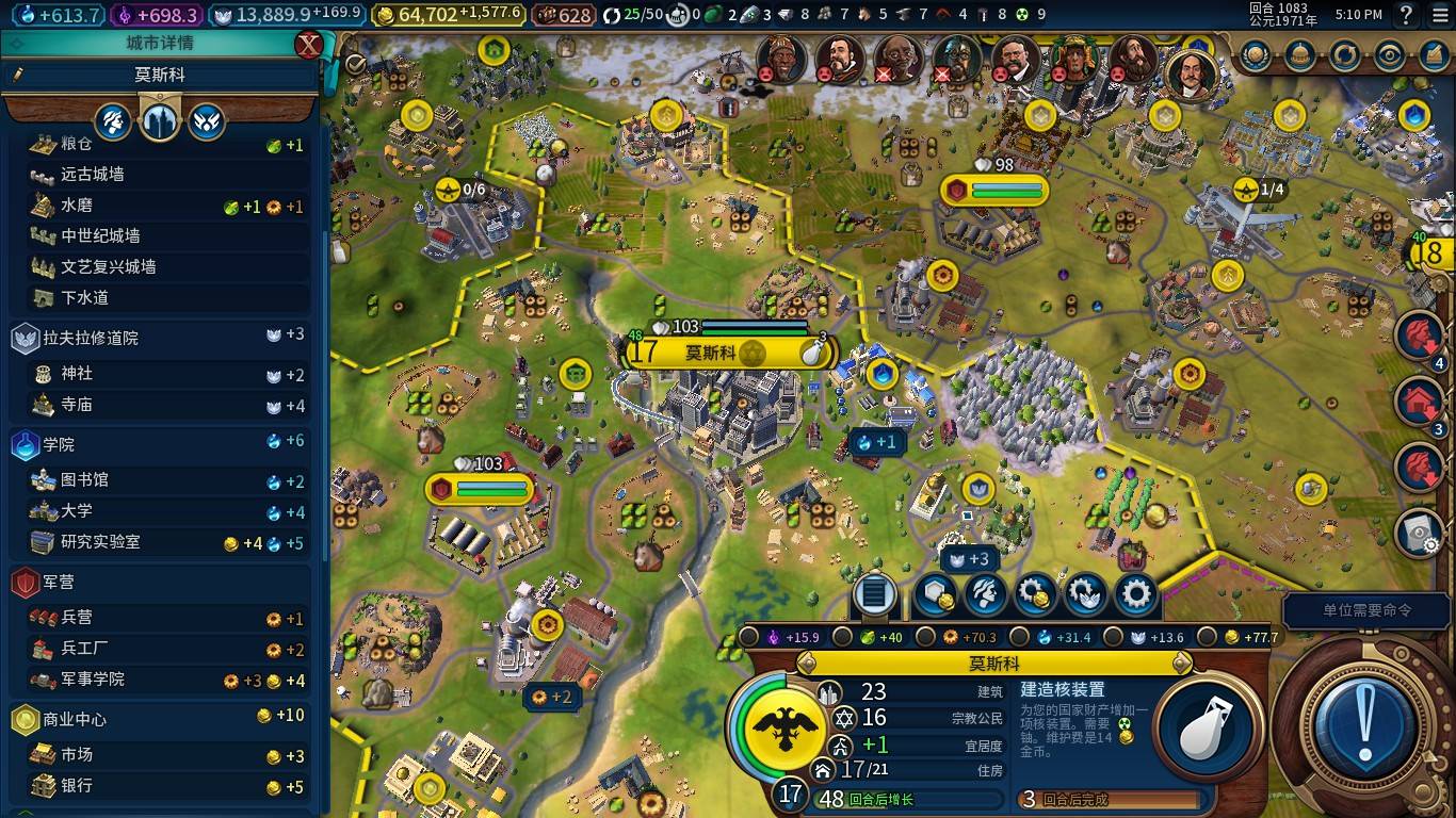 奇观与伟人能提供高额的宜居度增益,罗马斗兽场、马拉卡纳体育场等奇观,可大范围提升多座城市的宜居度,阿尔罕布拉宫、休伊神庙等奇观则能为单个城市带来显著加成。建造奇观需提前规划产能与位置,优先选择能覆盖多座核心城市的奇观项目。大商人、大工程师中的部分伟人,如雅诗兰黛、约翰等,可直接为城市提升宜居度或提供特殊奢侈品,招募后分配至宜居度较低的城市,能快速缓解宜居度不足的问题。同时要规避负面因素,长期战争会积累厌战情绪降低宜居度,财政破产会按赤字比例削减宜居度,需通过及时停战、平衡经济、部署反间谍防范资源破坏等方式,避免宜居度出现大幅下滑。